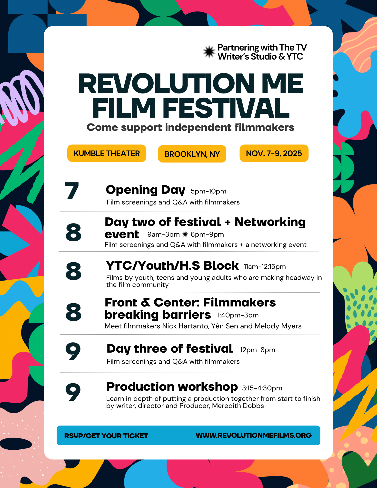 Revolution Me Film Festival is partnering up with The TV Writers Studio at LIU Brooklyn bringing you a diverse set of films from around the world.